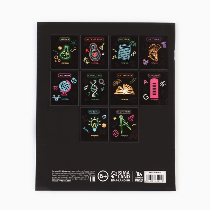 Предметная тетрадь А5, 48 л на скрепке «Неон. Алгебра» Софт тач лам, 3D лак