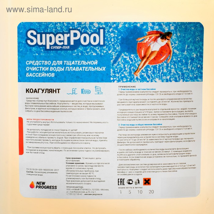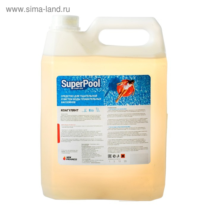 Средство я для очистки и осветления воды бассейнов Коагулянт "Супер - Пул", 5 л