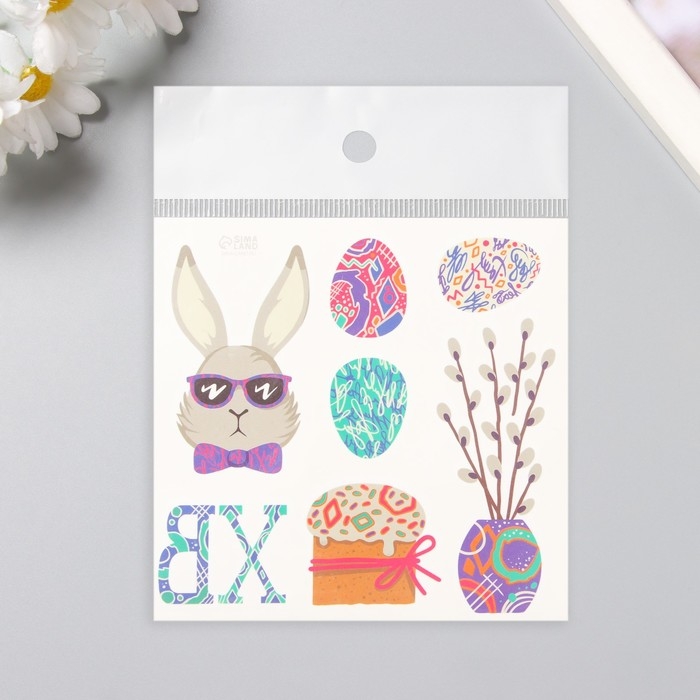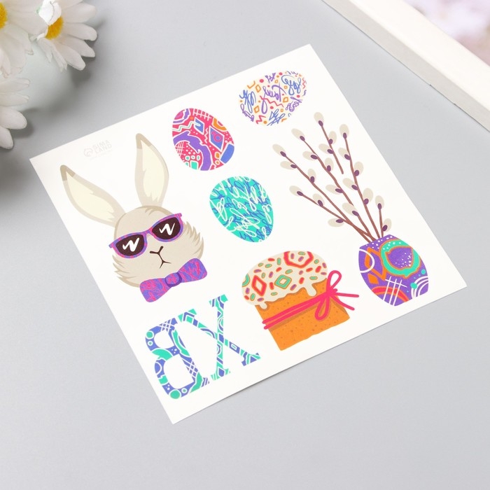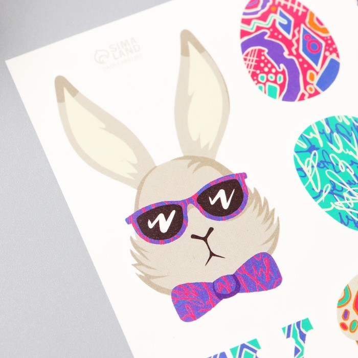 Татуировка на тело цветная "Кролик в очках" 10х10 см