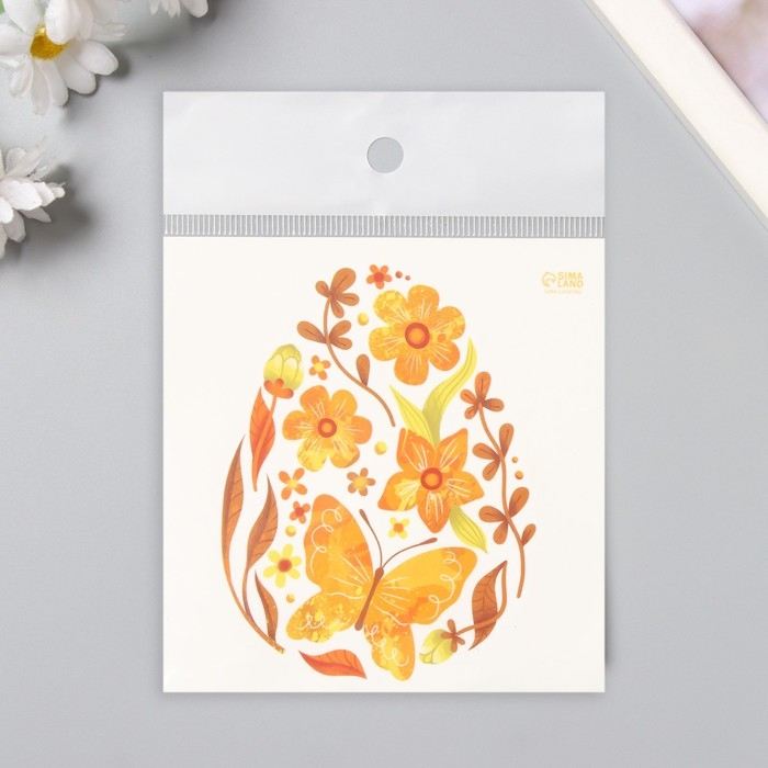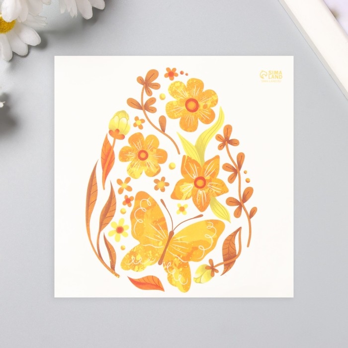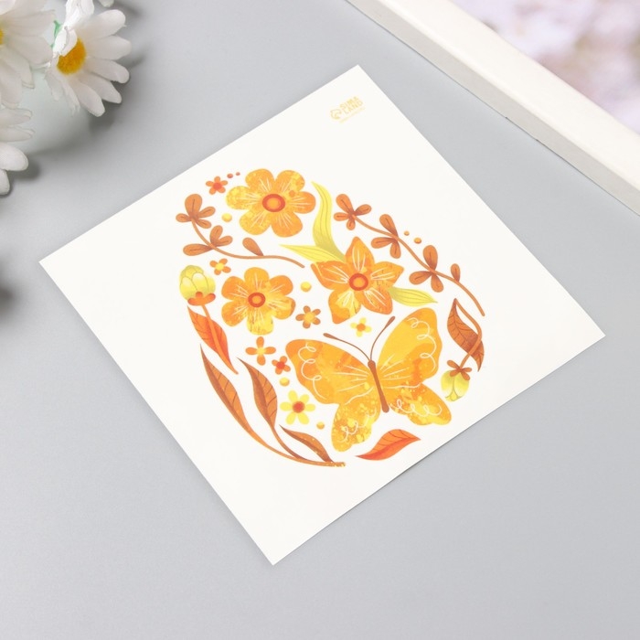 Татуировка на тело цветная "Яйцо с жёлтыми узорами" 10х10 см