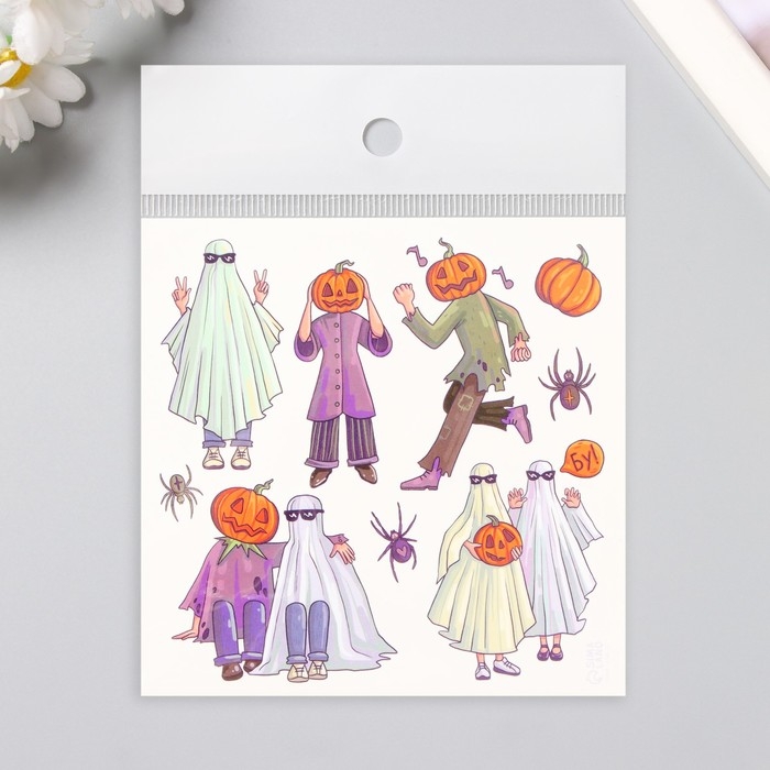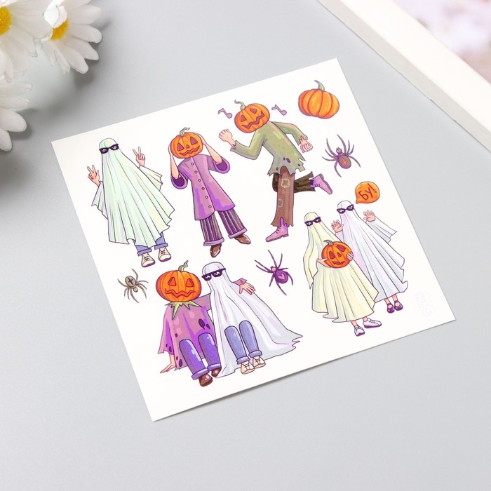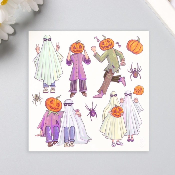 Татуировка на тело цветная "Приведения и тыквы" 10х10 см