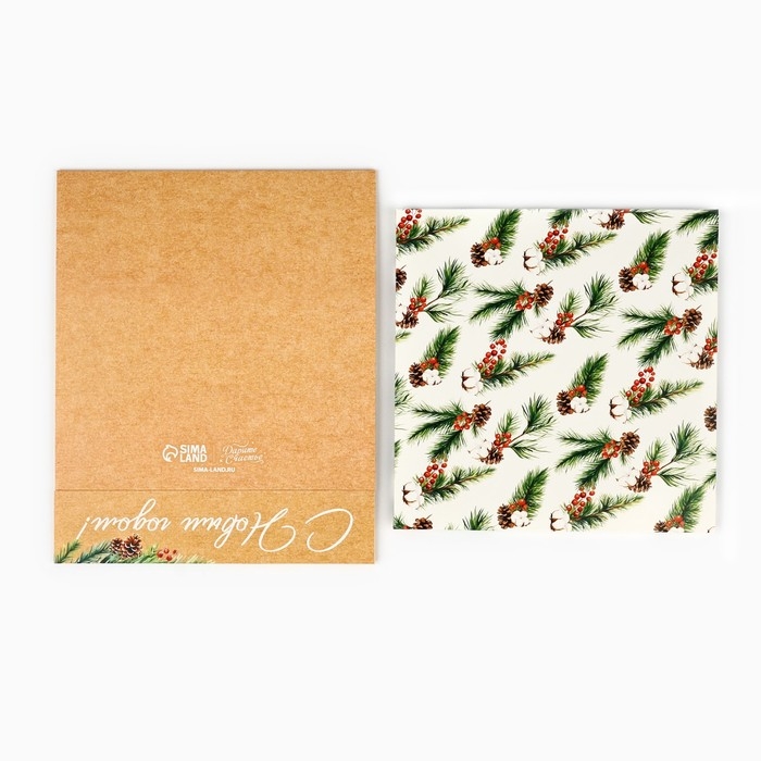 Коробка под 8 конфет и шоколад с ячейками «С Новым годом!», еловые веточки, 18 х 18 х 4 см, Новый год