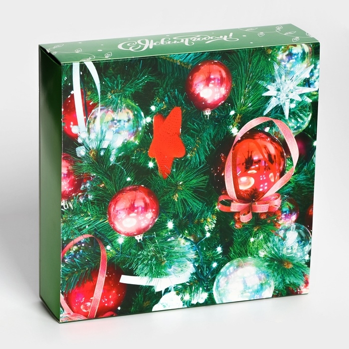 Новый год. Коробка под 9 конфет "Елочные игрушки", 13,8 х 13,8 х 3,8 , кондитерская упаковка