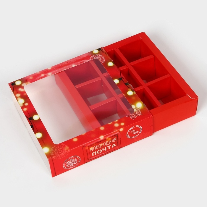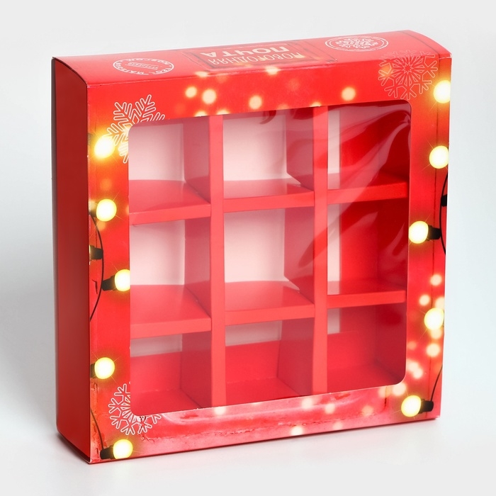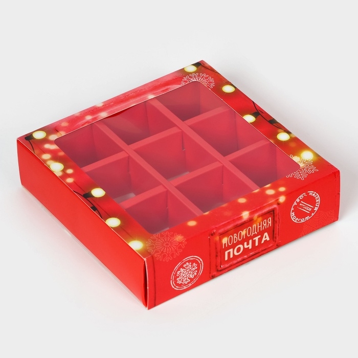 Новый год. Коробка под 9 конфет "Новогодняя почта", 13,8 х 13,8 х 3,8 , кондитерская упаковка