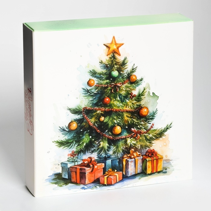 Прекрасно оформленная коробка выполнена в традиционном праздничном стиле, что придает ей волшебное зимнее очарование.