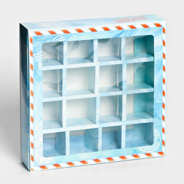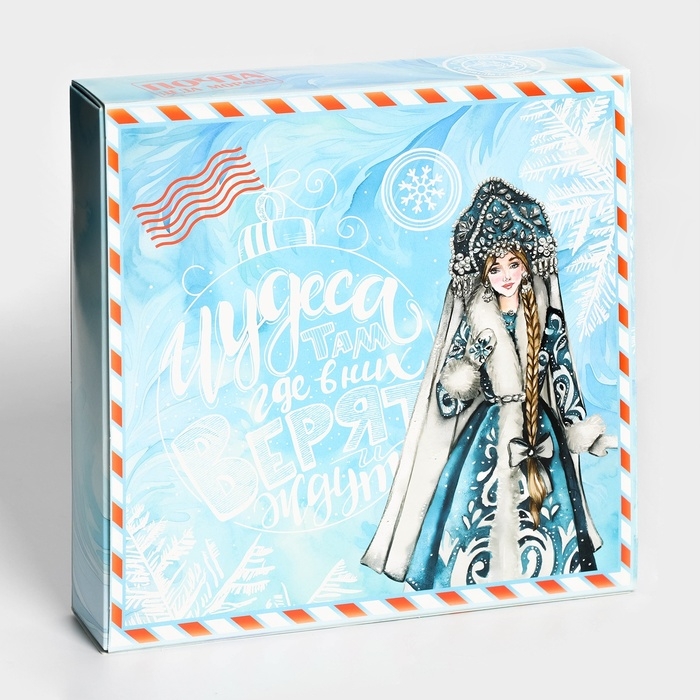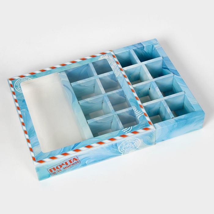 Новый год. Коробка под 16 конфет "Новогодняя почта", 17,7х17,7х3,8 см, кондитерская упаковка