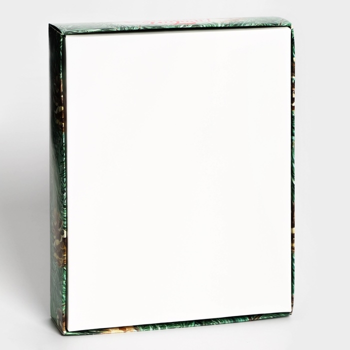 Коробка имеет прямоугольную форму и состоит из двух частей: верхней крышки и нижней части. Верхняя крышка украшена красивым рисунком, который подчеркивает новогоднюю тематику. Нижняя часть коробки предназначена для размещения конфет.