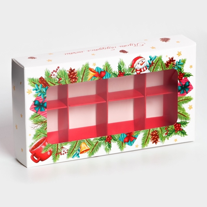 Новый год. Коробка под 8 конфет, 9,8 х 17,7 х 3,5 см, кондитерская упаковка