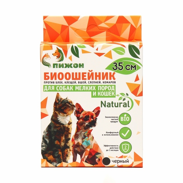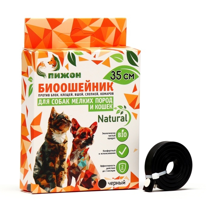 Биоошейник от паразитов"ПИЖОН Natural" для мелких собак,кошек от блох и клещей,черный,35 см,