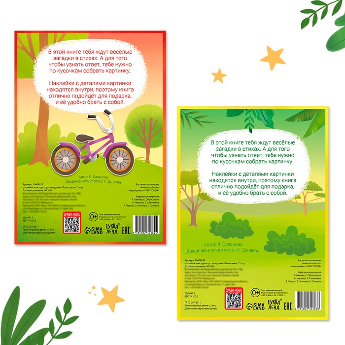 Набор наклеек конструкторов с загадками, 2 шт., более 85 наклеек, 3+