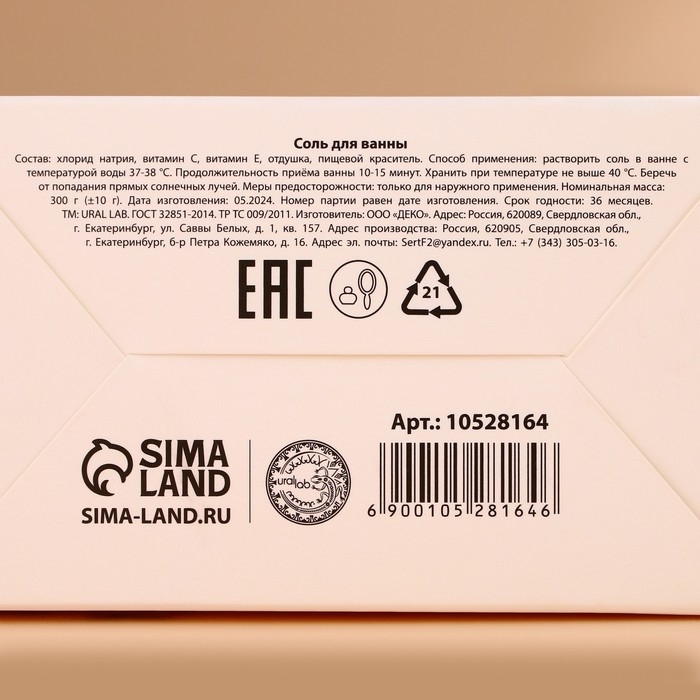 Соль для ванны ЧИСТОЕ СЧАСТЬЕ I love you, 150 г, аромат сливочного пломбира