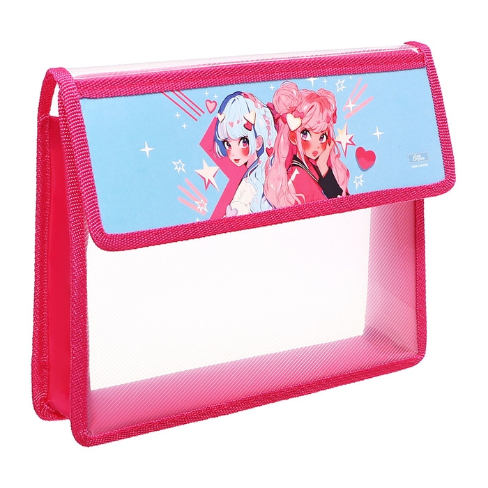 Папка для тетрадей А5 (230 х 190 х 50 мм), с клапаном на липучке, пластик/текстиль, Calligrata, "Аниме подружки"