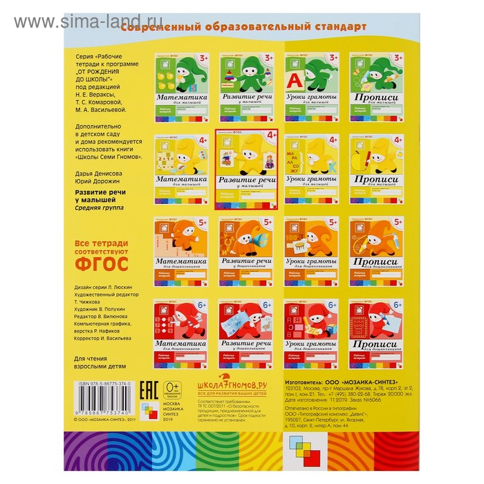 Набор рабочих тетрадей: математика, прописи, развитие речи, уроки грамоты. Средняя группа 4+