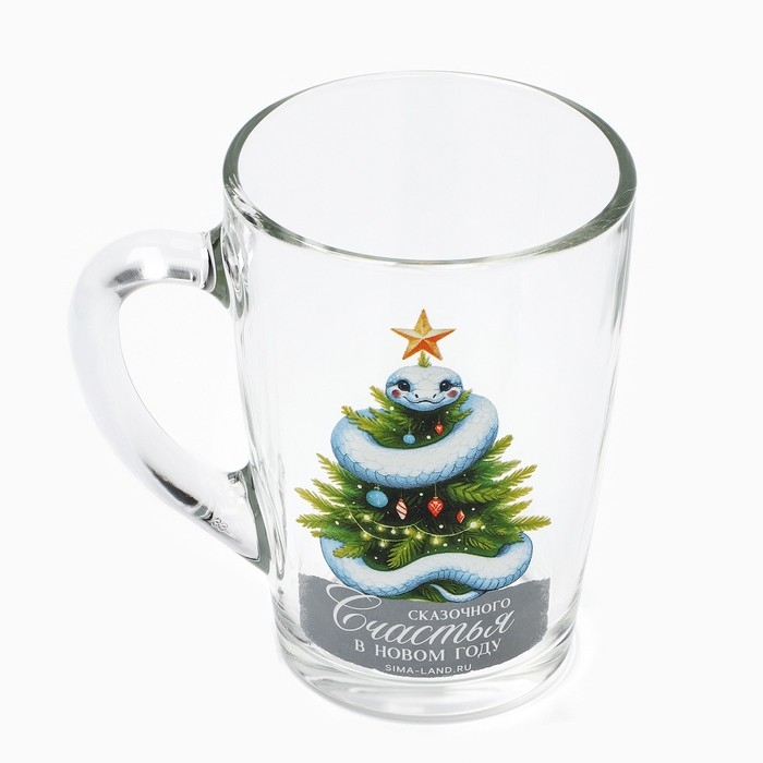 Объём 300 мл позволит насладиться любимым напитком в уютной обстановке. Милый дизайн с изображением новогоднего символа 2025 года поднимет настроение и создаст атмосферу праздника. Изготовлена из качественного стекла, кружка прослужит долго. Отличный выбор для тех, кто хочет порадовать своих любимых!