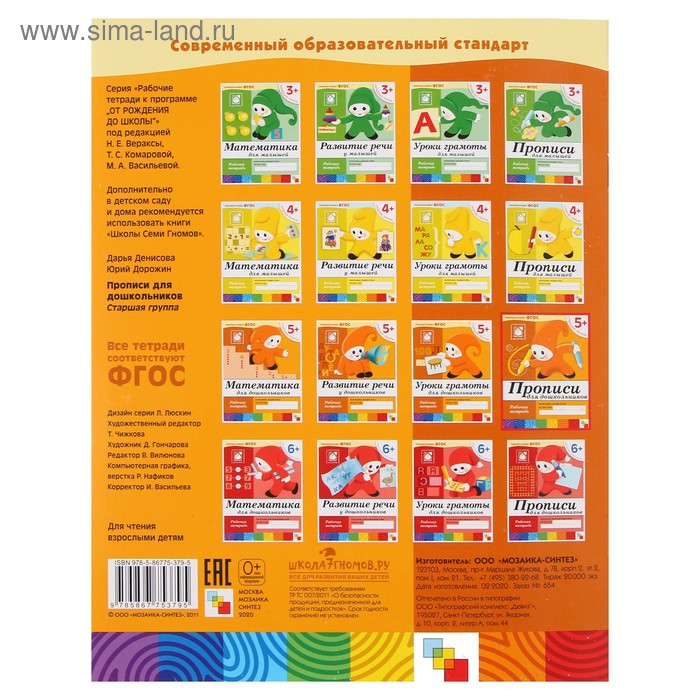 Набор рабочих тетрадей: математика, прописи, развитие речи, уроки грамоты. Старшая группа 5+