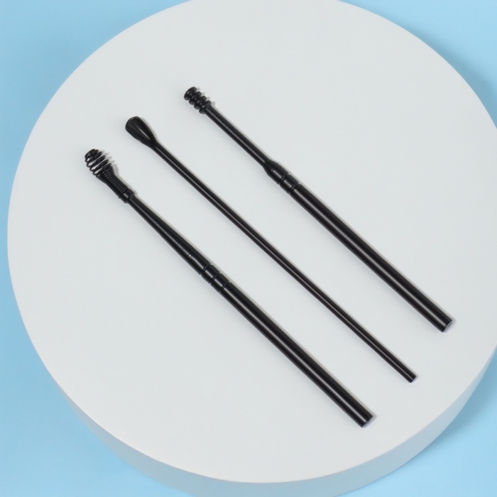 Набор д/чистки ушей 3пр 15,3*2,4*1,1см пластик/силикон цв чёрн пластик футл пакет QF