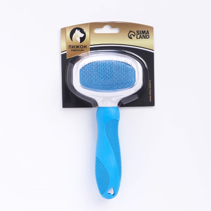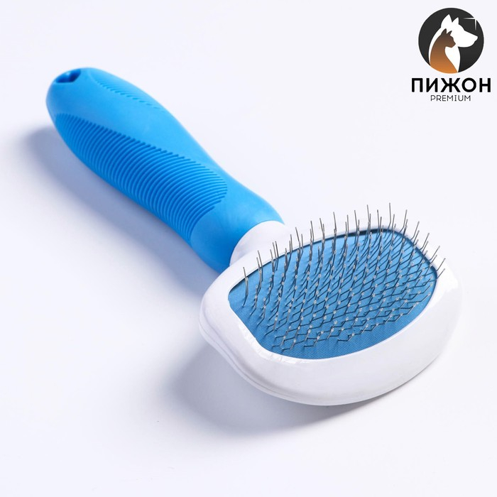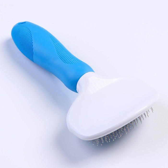 Пуходёрка пластиковая с функцией самоочистки, 7,7 х 19,1 см, голубая