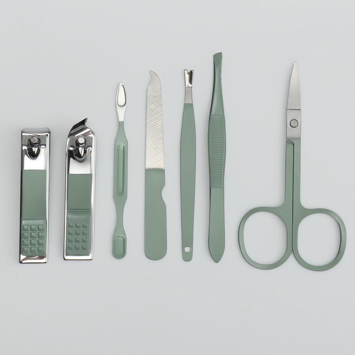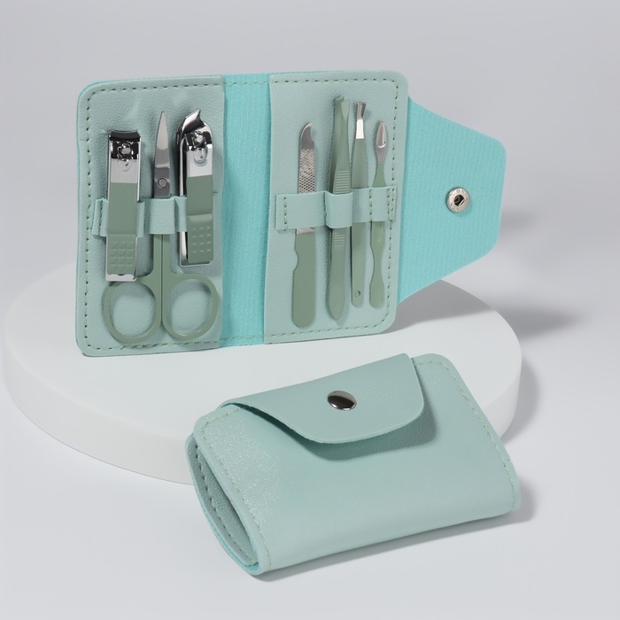 Набор маникюрный, 7 предметов, в футляре, цвет ментоловый