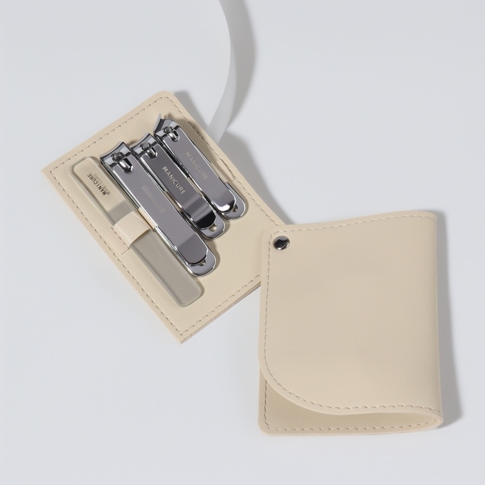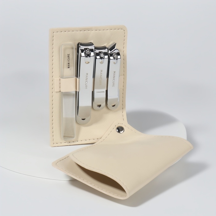 Набор маникюрный, 4 предмета, в раздвижном футляре, цвет бежевый