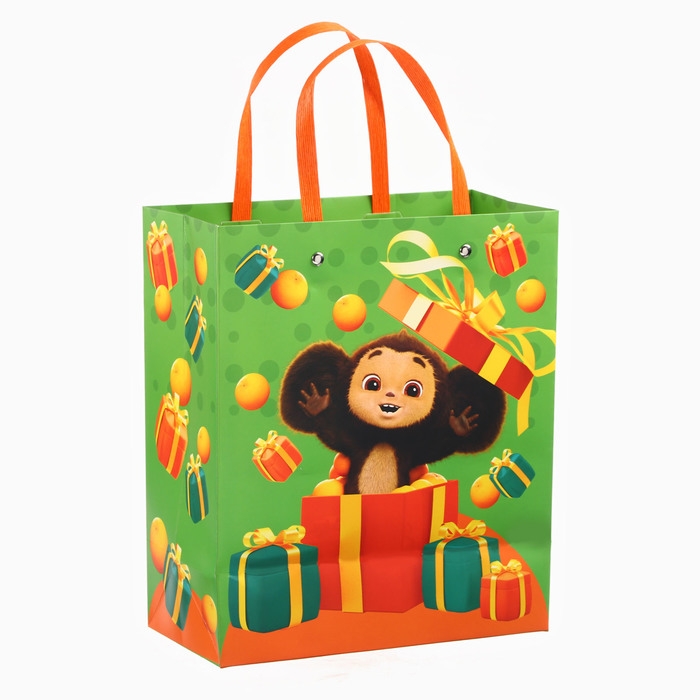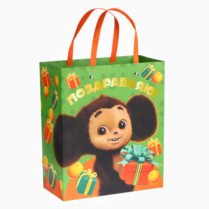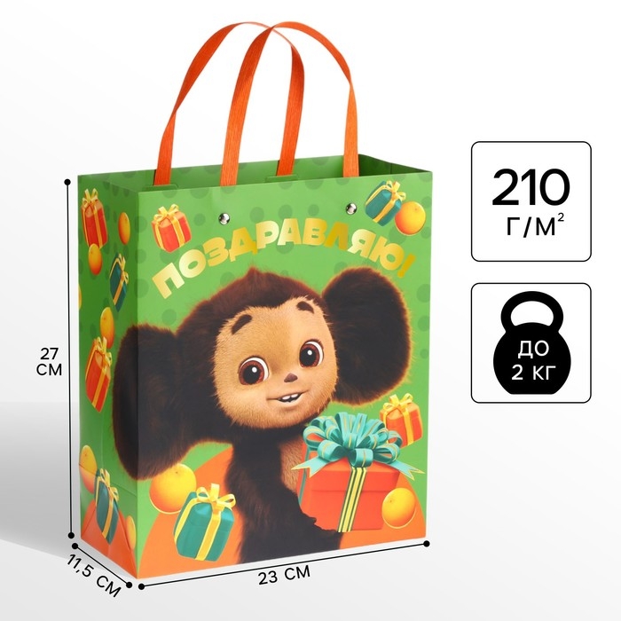 Пакет подарочный ламинированный с тиснением "Поздравляю!", Чебурашка, 23х27х11,5 см