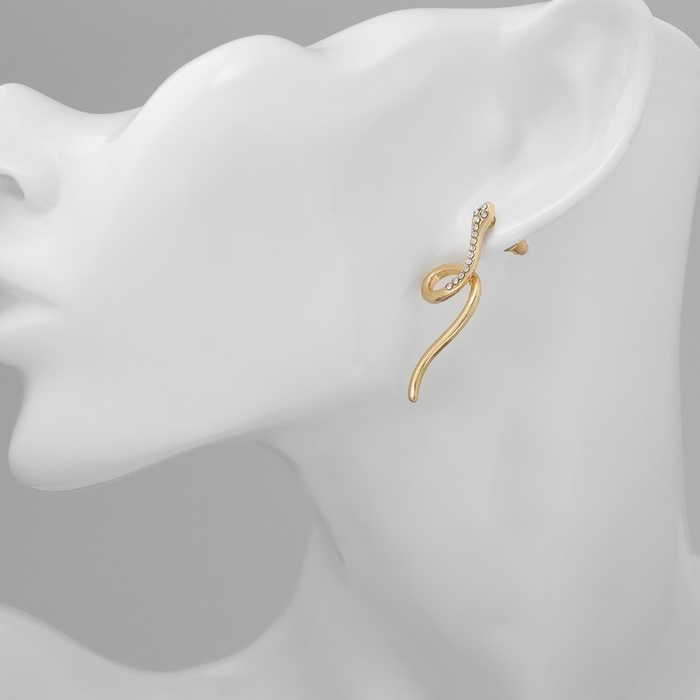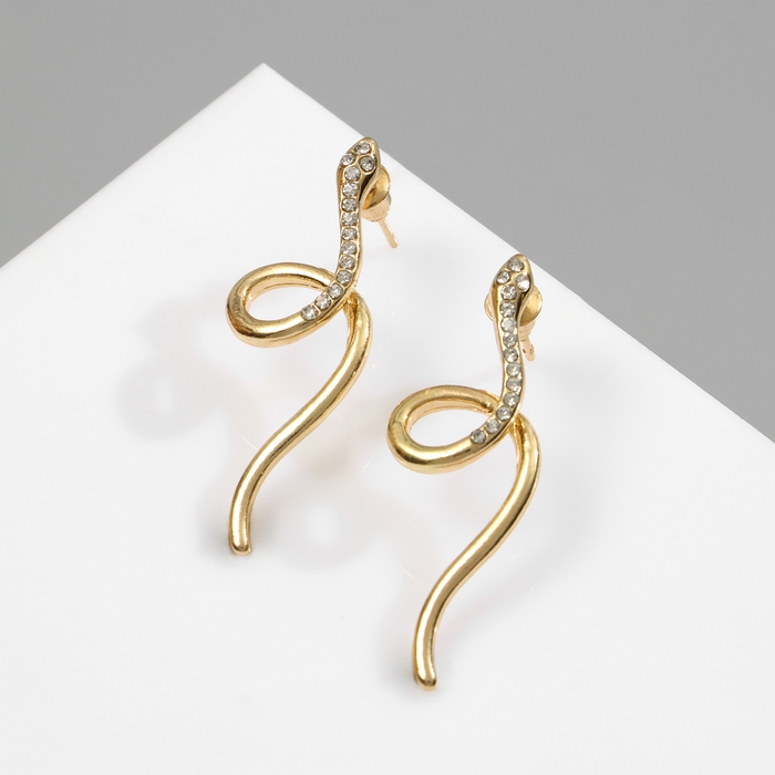 Новый год! Символ года 2025! Серьги со стразами «Змейка» спираль мини, цвет белый в золоте