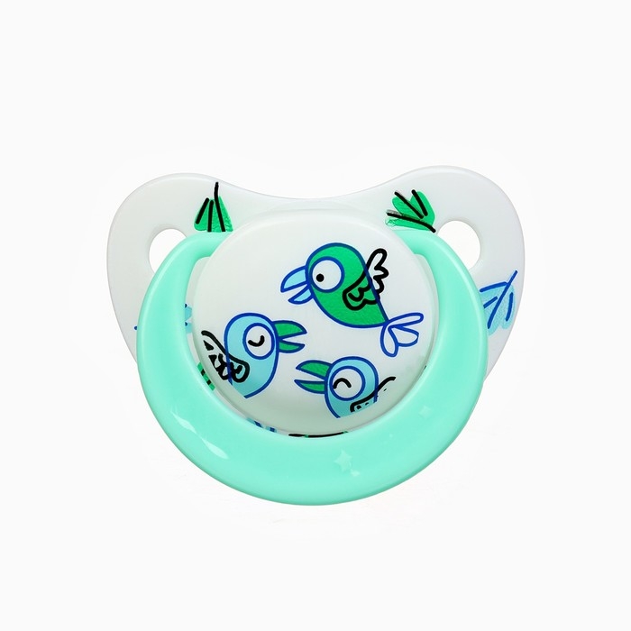 Соска - пустышка ортодонтическая «Птички», +6 мес., цвет зеленый