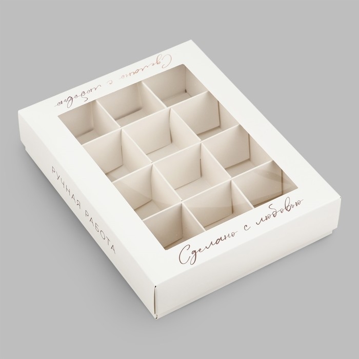 Коробка складная под 12 конфет «Ручная работа», 14,4 х 18,4 х 3,8 см