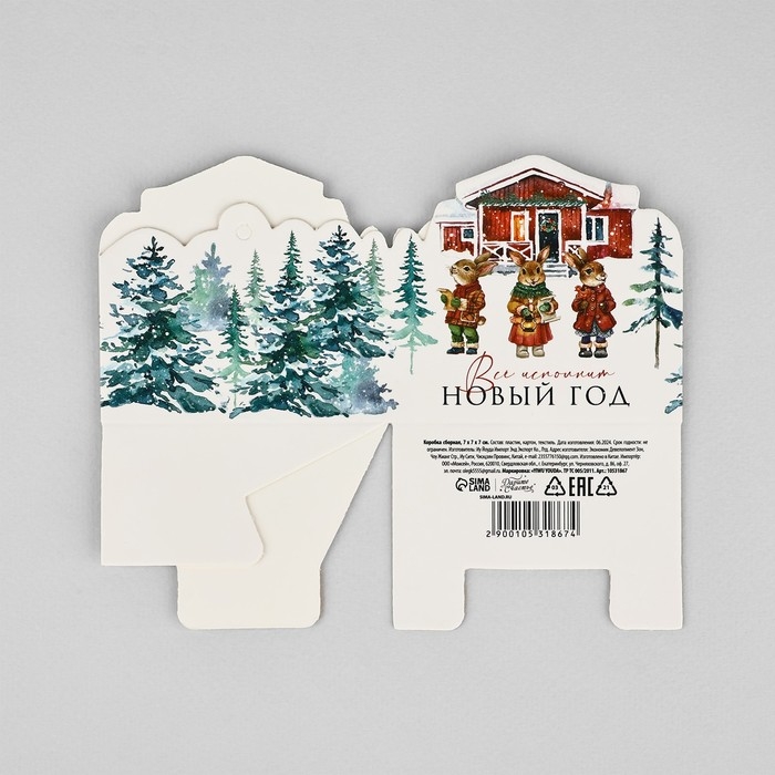 Коробка подарочная новогодняя складная «Новогодний домик», 7 х 7 х 7 см, Новый год