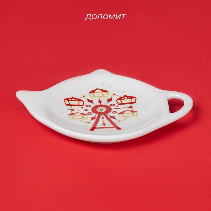 Новогодняя подставка под чайный пакетик Доляна «Парк аттракционов», керамика, 12×9,5 см, цвет белый