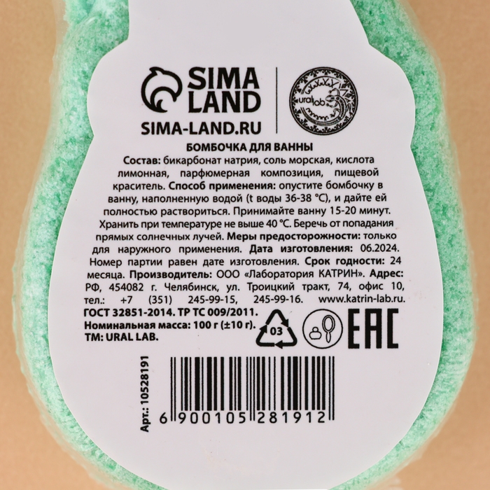 Бомбочка для ванны "Авокадо", ваниль, 90 гр "Добропаровъ"