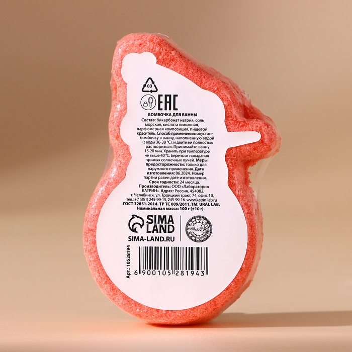 Бомбочка для ванны, 100 г, аромат клубничного джема, Новый Год