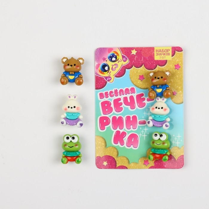 Набор пластиковых значков "Веселая вечерина", 3 шт, 2,1 х 2,9 см