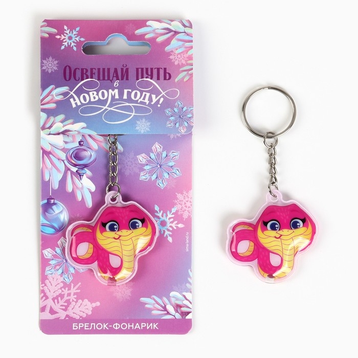 Новогодний брелок с фонариком для ключей «Новый год: Милая змейка» 5 х 10 см