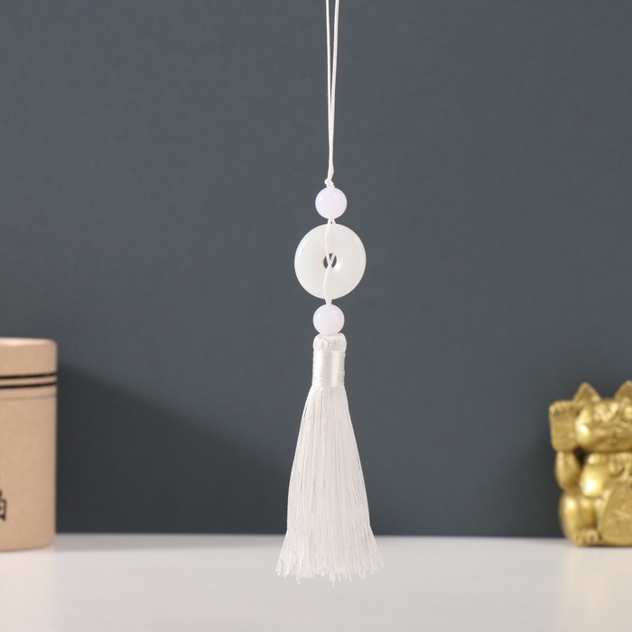 Подвеска текстиль, пластик "Нефритовый кулон" белая 1х2,5х12,5 см