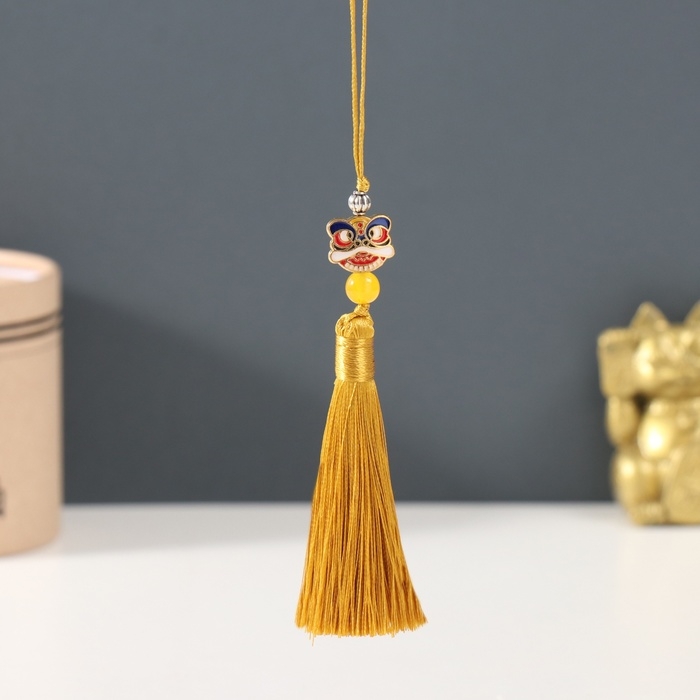 Подвеска текстиль, металл "Китайский лев" золотая 1х1,2х10 см
