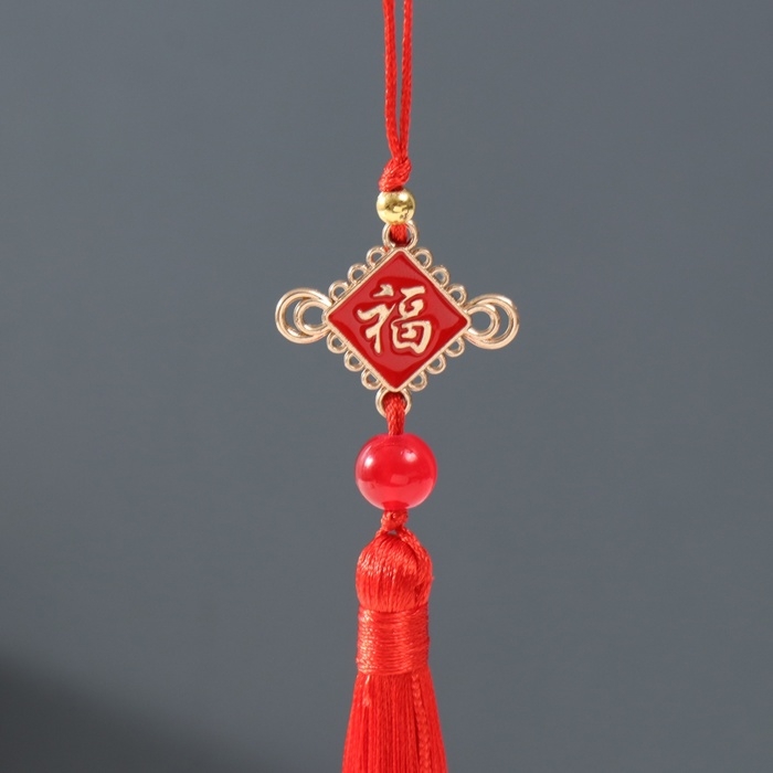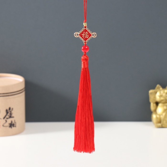 Подвеска текстиль, металл "Узел счастья и бесконечности с иероглифом" красная 1х1,2х19,3 см 105374