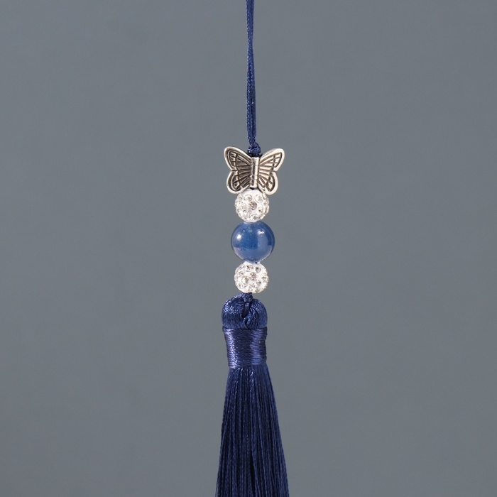 Подвеска текстиль, металл "Бабочка" тёмно-синяя 1х1,2х16,5 см