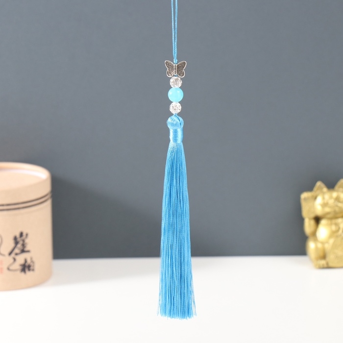 Подвеска текстиль, металл "Бабочка" синяя 1х1,2х16,5 см