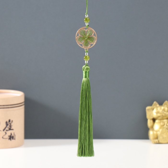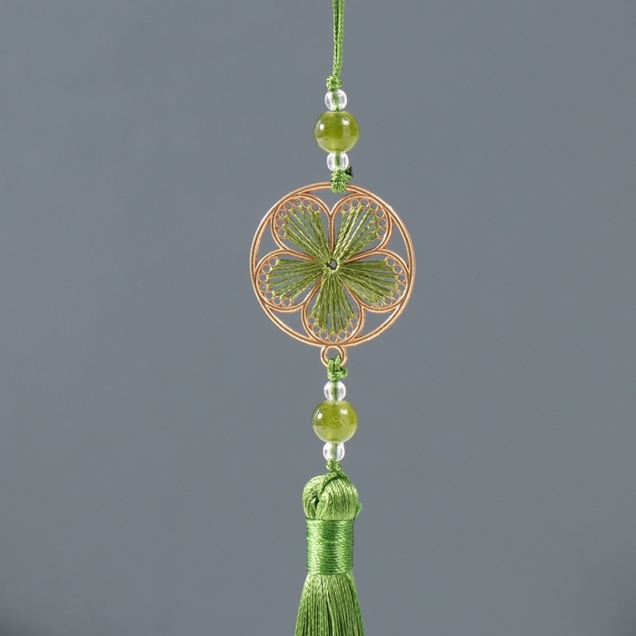 Подвеска текстиль, металл "Цветок в оправе" зелёная 1х3х19,5 см