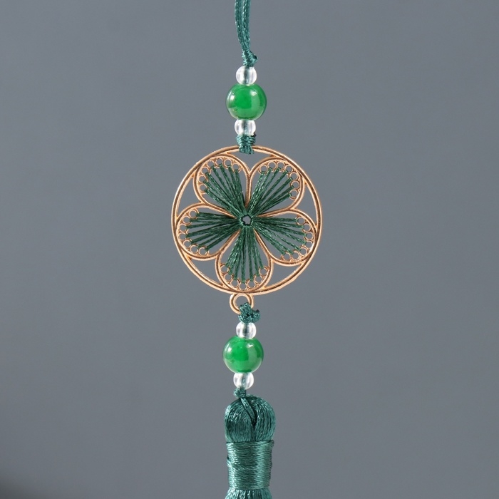 Подвеска текстиль, металл "Цветок в оправе" тёмно-зелёная 1х3х19,5 см