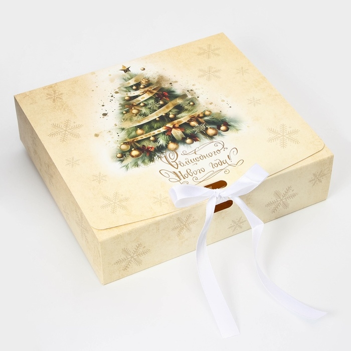 Складная подарочная коробка новогодняя с лентой, размером 20 × 18 × 5 см — это стильное и удобное решение для упаковки ваших праздничных подарков. Эта элегантная коробка с новогодним дизайном станет идеальным выбором для демонстрации ваших подарков в самые важные моменты.