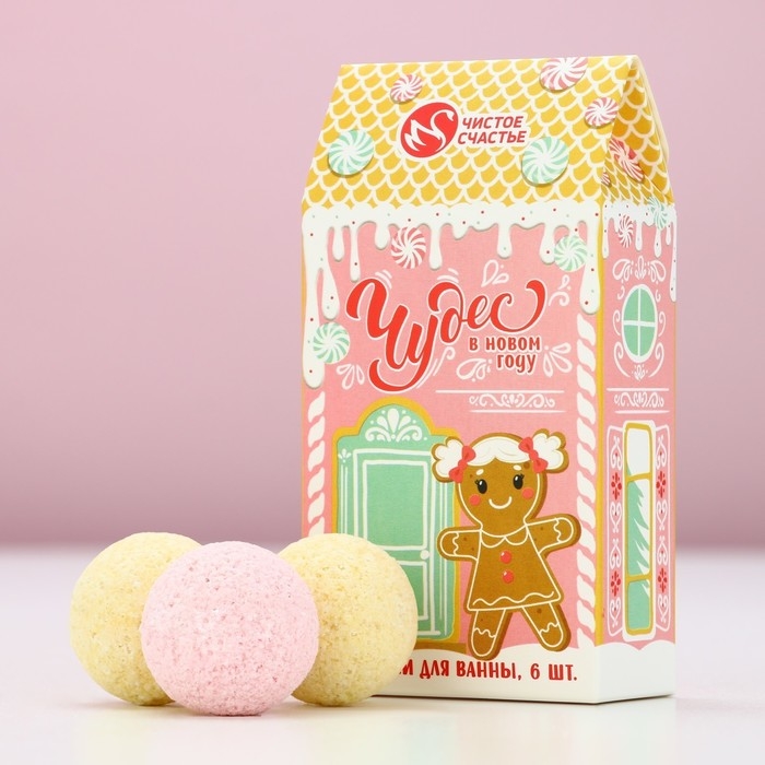 Подарочный набор косметики «Чудес», бомбочки для ванны, 6 х 20 г, аромат клубничного мороженого, имбирного пряника и ванильного коктейля, Новый Год