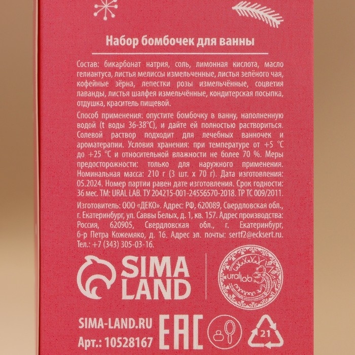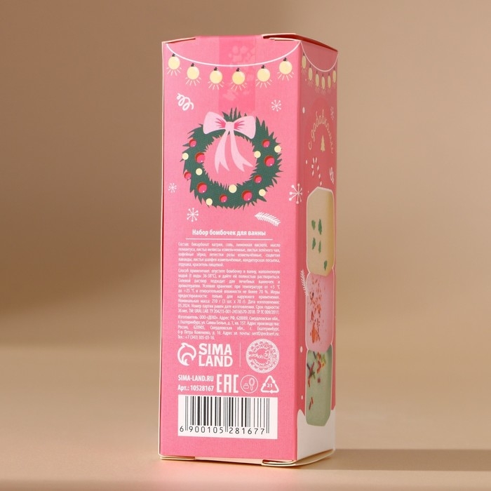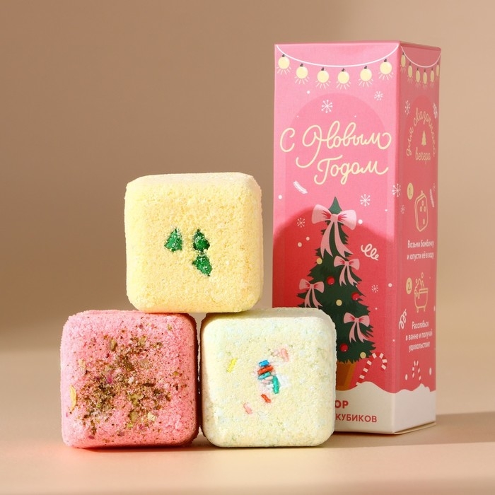 Подарочный набор косметики «С Новым Годом», бомбочки для ванны с добавками, 3 х 70 г, аромат ванили, Pink Collection by URAL LAB