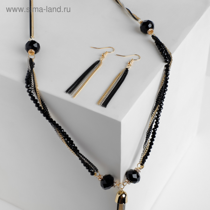 Набор 2 предмета: серьги, бусы «Унисон» накрученность, цвет золото в чёрном, 60 см