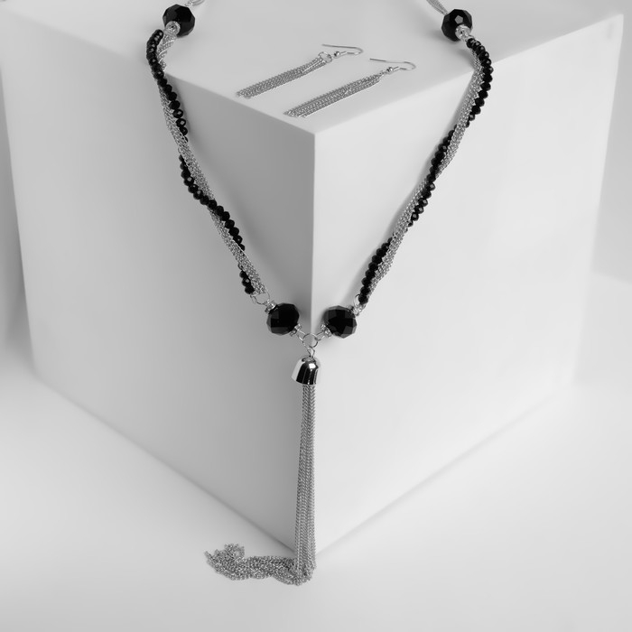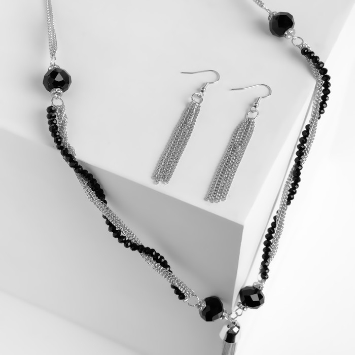Набор 2 предмета: серьги, бусы «Унисон» накрученность, цвет чёрный в серебре, 60 см