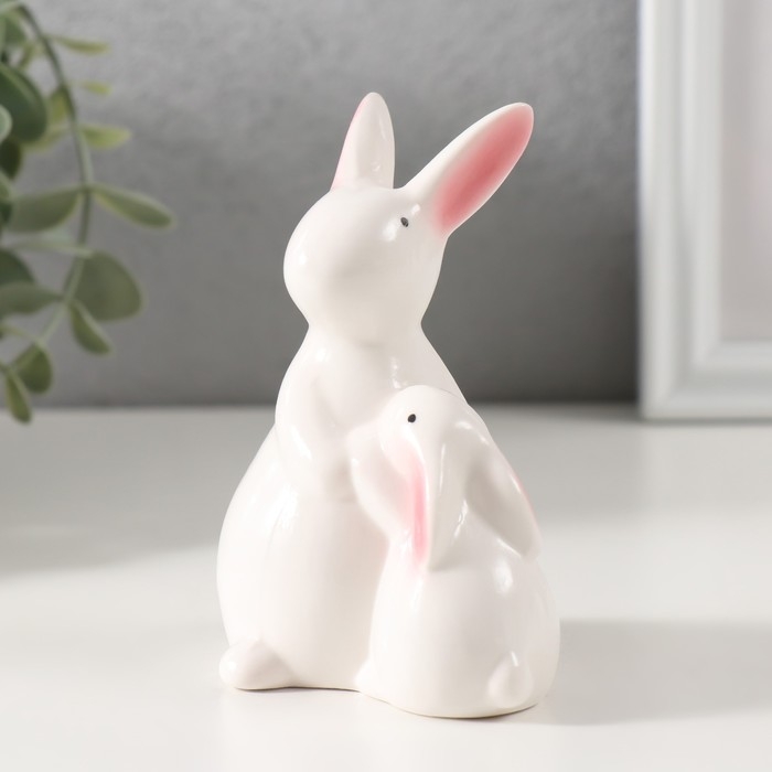 Сувенир керамика "Заюшка с зайчиком беленькие" 5,3х8х10 см