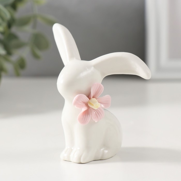 Сувенир керамика "Крольчонок с розовым цветочком" 6,8х4,8х7,9 см