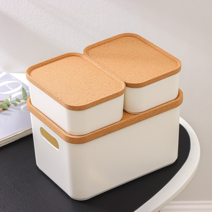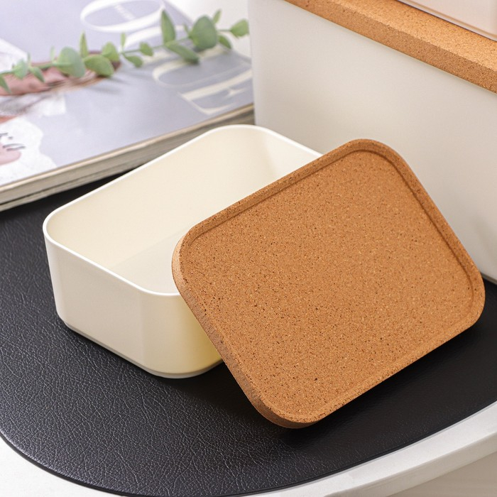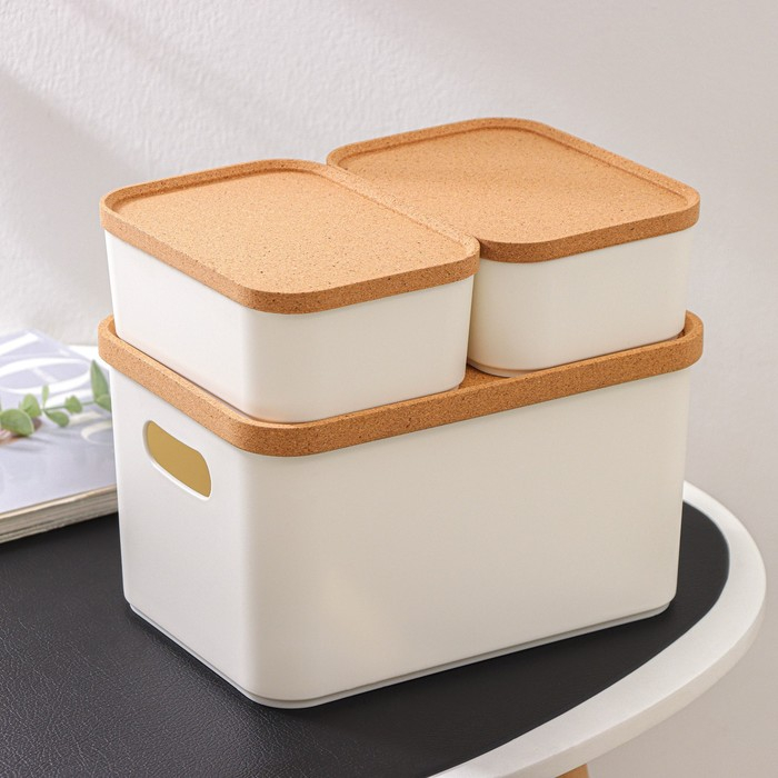 Набор состоит из 3 органайзеров с крышками: одного большого, объёмом 2,4 л, и двух маленьких, объёмом 0,76 л. Крышки сделаны из экологически чистого, безопасного и возобновляемого материала — коры пробкового дерева. Её срезают, когда дерево достигает 25-летнего возраста. Процесс повторятся каждые 9–10 лет, что помогает восстановить слой коры и не вредит деревьям.