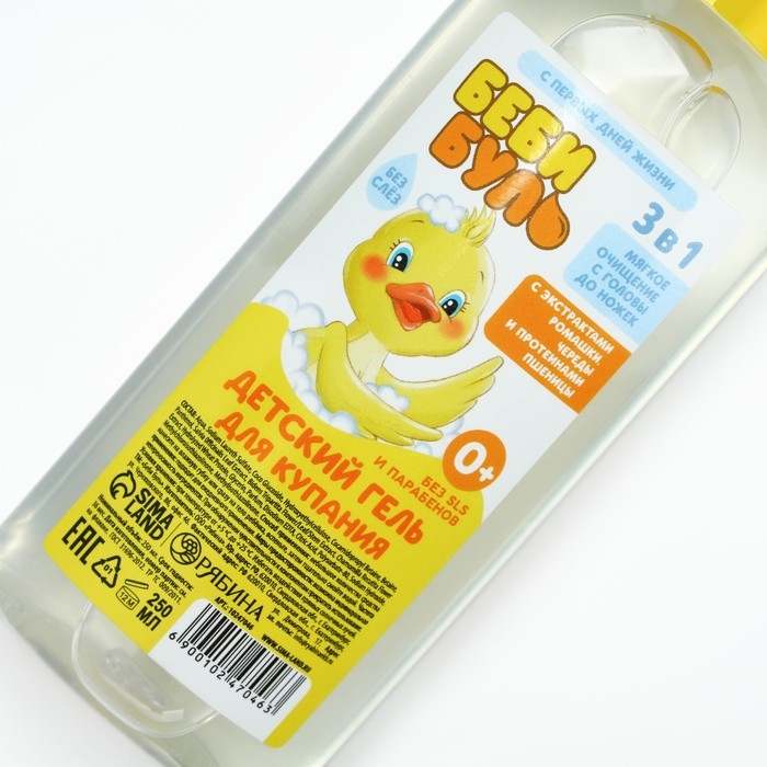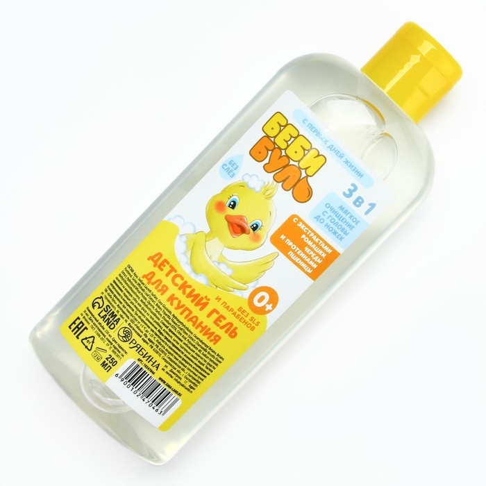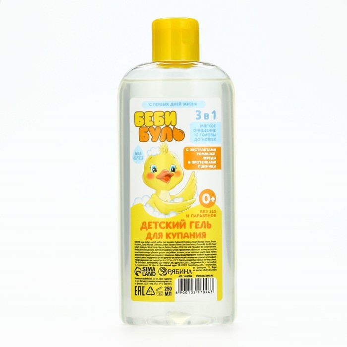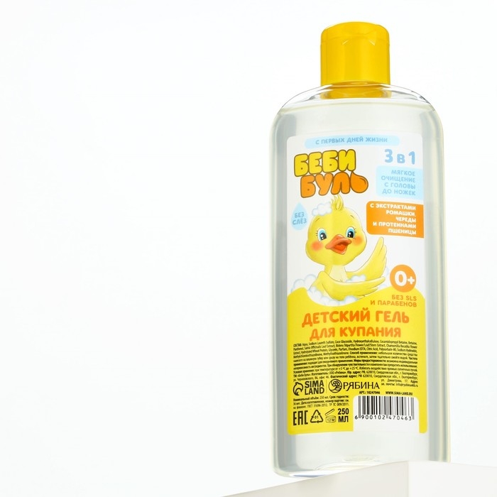 Детский гель для купания без слёз, 250 мл, с экстрактами ромашки, череды и протеинами пшеницы, 0+, БЕБИ БУЛЬ