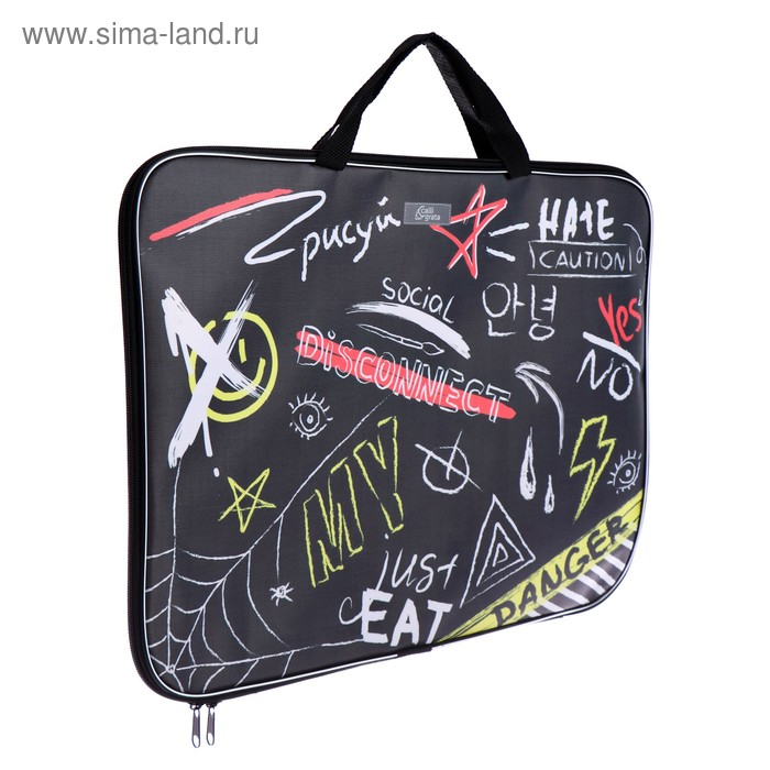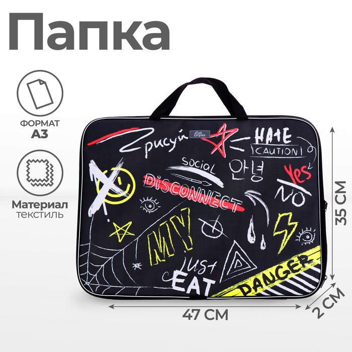 Папка для чертежей и рисунков А3, 470 х 350 х 20 мм, с ручками, текстильная, Calligrata, "Надписи"